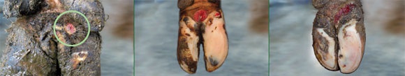 - chronische Mortellaro, vergelijkbaar met punt twee, maar dan met een duidelijke korst op de wond en niet pijnlijk bij aanraken.